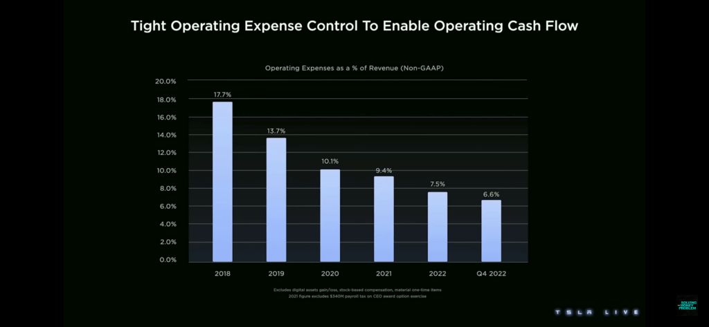 Despite insane scaling, operation expenditure has decreased exponentially over time, enabling insane cash flow
