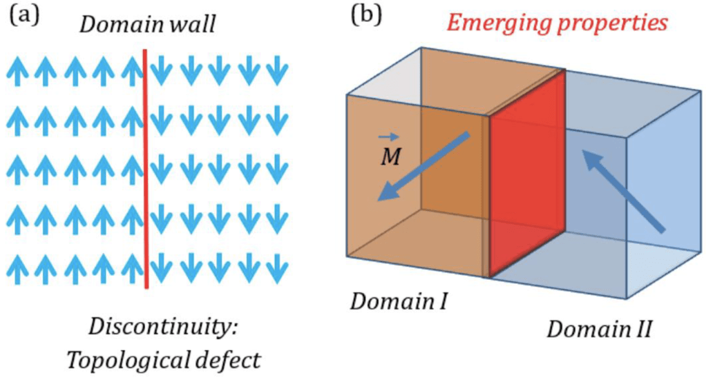 Topological solitons are structures that maintain their shapes even after the material moves through an environment or interacts with other objects. This is an umbrella term that has many different examples; some predominant ones include domain walls, skyrmions, and kinks. Domain walls are boundaries that separate two domains with different orientations [10][11]. Skyrmions are regions that resemble a twisted knot; typically residing in magnetic materials, skyrmions twist the magnetic field [17]. Kinks are areas where the orientation of the material changes abruptly; they are often observed in materials with strong non-linear effects, such as in some types of soliton systems, and can have interesting and useful properties for applications in areas such as data storage and information processing [16]. Topological solitons have been observed in a wide range of physical systems, including magnetic materials [17], superconductors [10], liquid crystals [13], and even biological systems such as DNA [19]. They have important implications for fundamental physics [10][11] as well as potential applications in areas such as data storage, energy conversion, and quantum computing [16].
